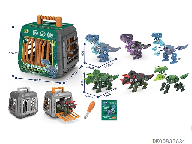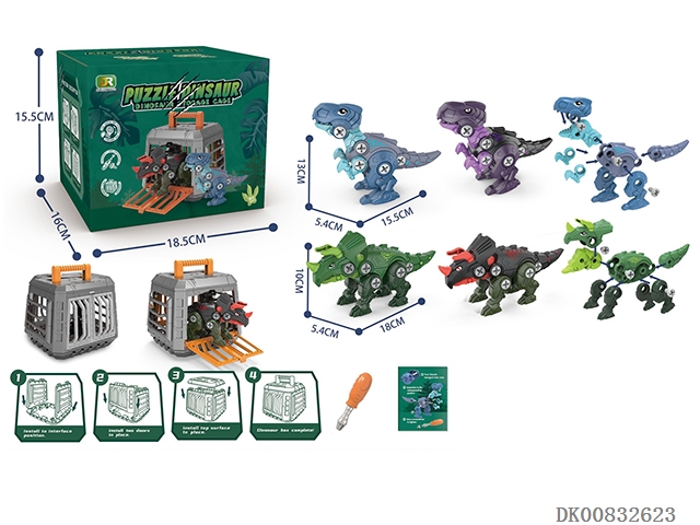 Puzzle assembling dinosaur cage