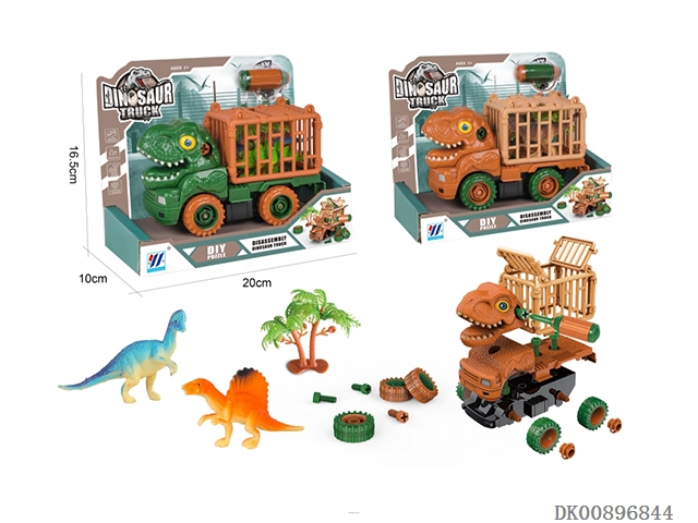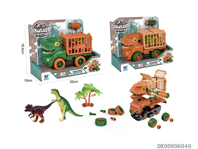 Two in one diy inertia disassembly dinosaur transport vehicle (2-color mixed loading)