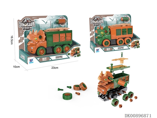 Two in one diy inertial disassembly dinosaur engineering vehicle (2-color mixed loading)