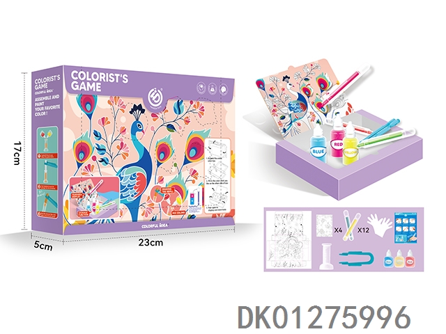 Science experiment watercolor pen graffiti&stereoscopic painting storage color box series (peacock open screen)