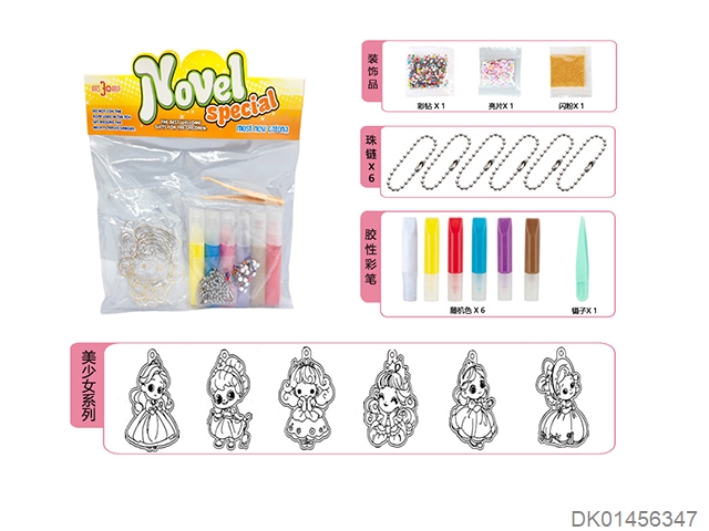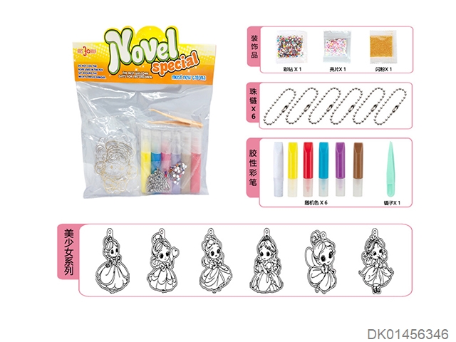 6 Princess diy non baking adhesive painting pendants