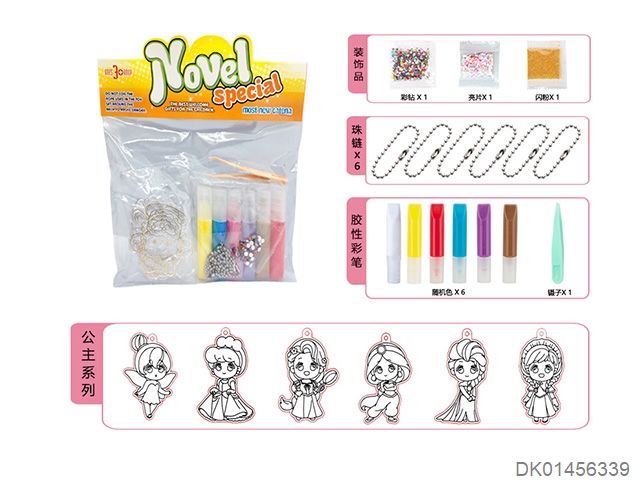 6 Princess diy non baking adhesive painting pendants