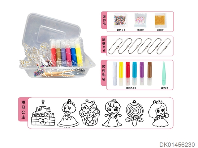 12 Dessert princess animals - diy non-baking glue painting pendants