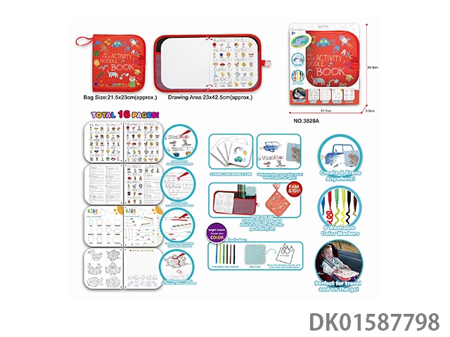 Travel graffiti book, 16 pages in total, 6 colored pens, 1 wiping cloth, 1 instruction manual