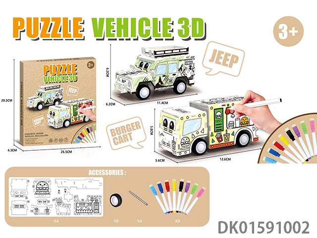 3D off-road vehicles, fast food trucks, and 8-color pen coloring