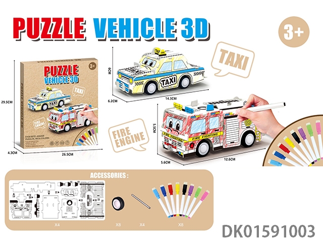 3D taxi and fire truck and 8-color pen coloring