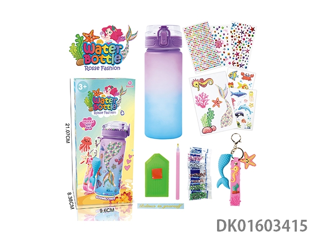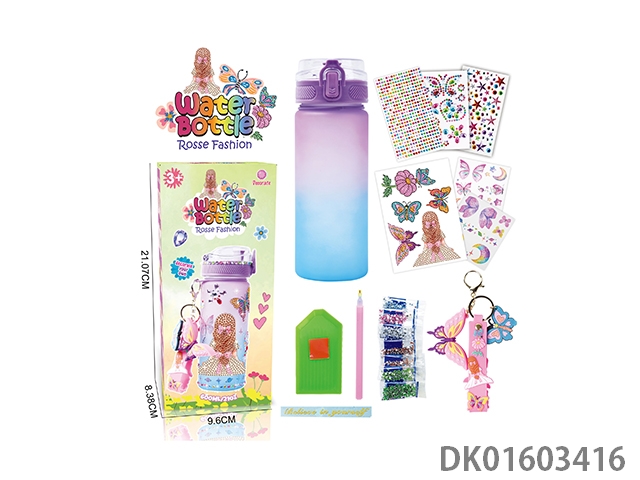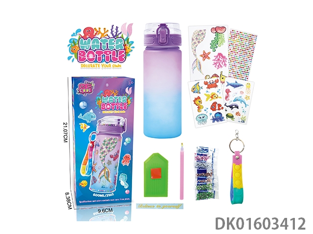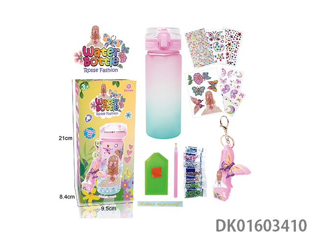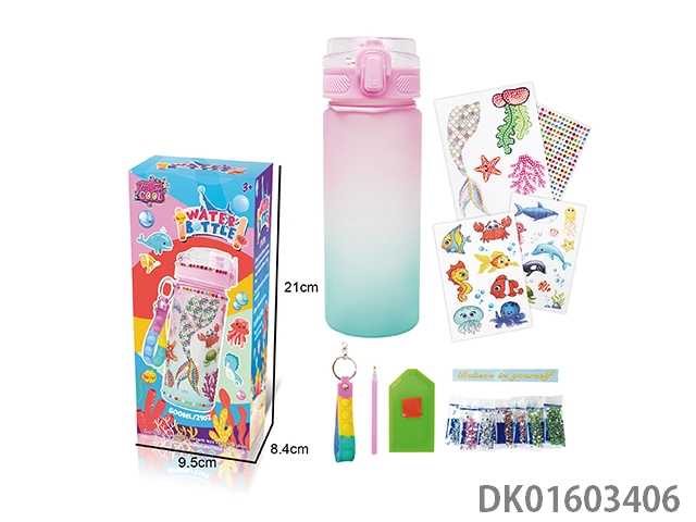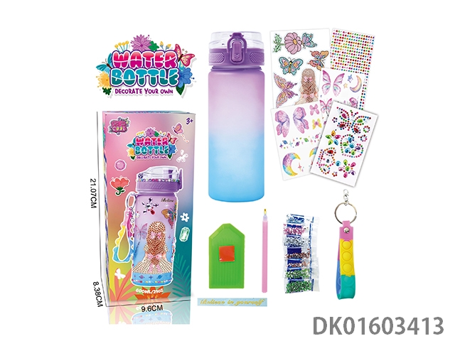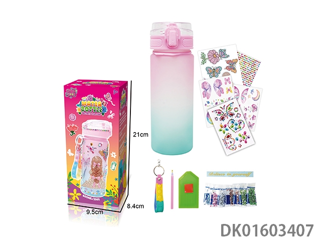 Diy diamond gradient water bottle - girls (600ml, 3 diamond stickers, 2 tattoo stickers, 1 keychain)