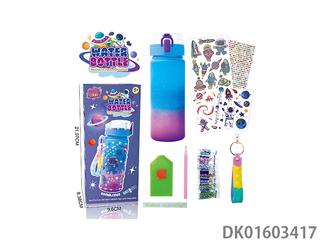 Diy diamond gradient water bottle - space (600ml, 2 diamond stickers, 2 tattoo stickers, 1 keychain)
