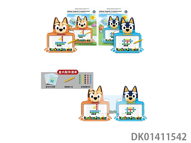 Bruy animal acrylic magnetic pen writing board (with 20 reference pattern cards, one magnetic suction pen, and 60 colored magnetic beads)