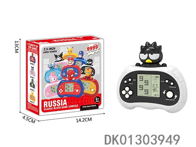 Russian box (large screen/26 mode/9999 level) small black cartoon game console (2 aa not included)
