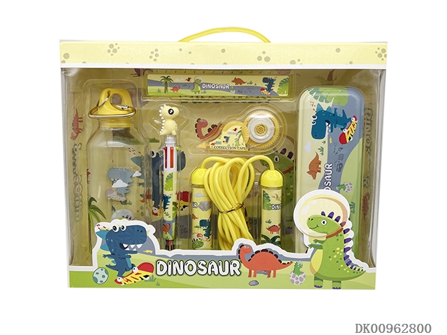 Stationery set (skipping rope and kettle and correction tape and ball point pen and iron box and ruler) dinosaur world