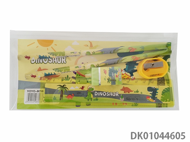Zip pencil case stationery case (2 pencils and 1 pencil planer, 1 eraser and 1 ruler) dinosaur world