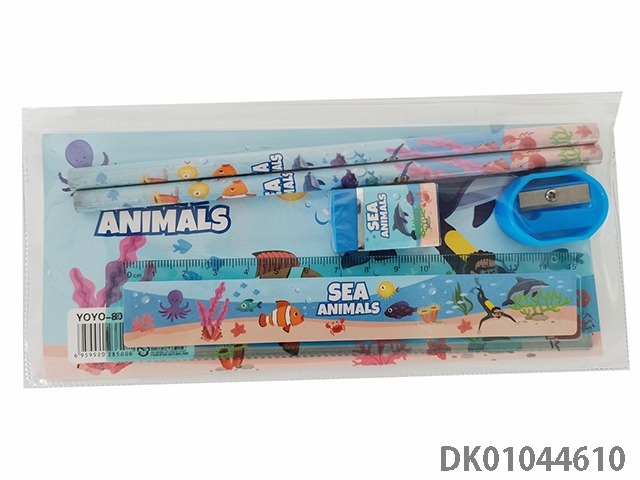 Zip pencil case stationery case (2 pencils and 1 pencil planer, 1 eraser and 1 ruler) ocean world