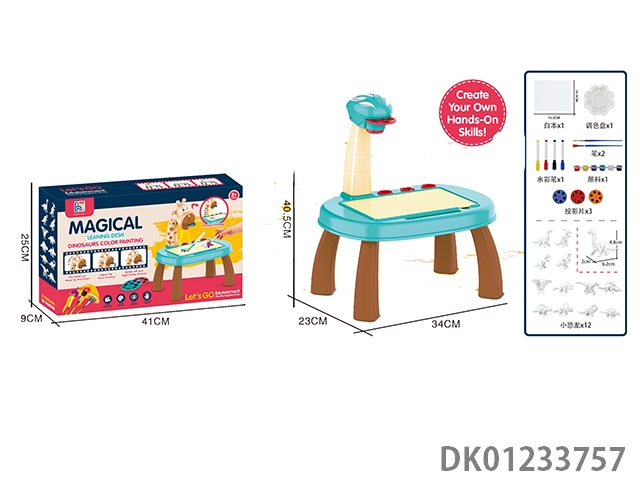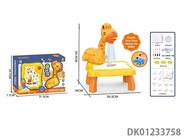Cartoon deer projection painting table with 10 colored paintings and 10 colored dinosaurs