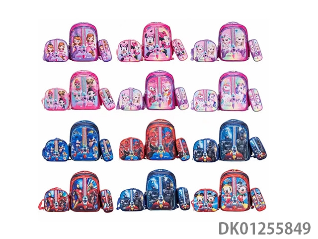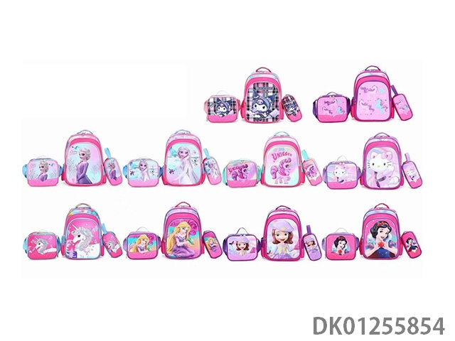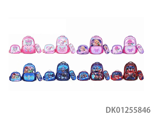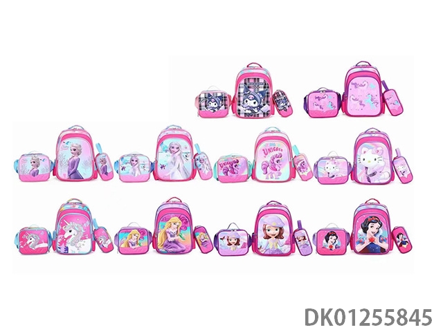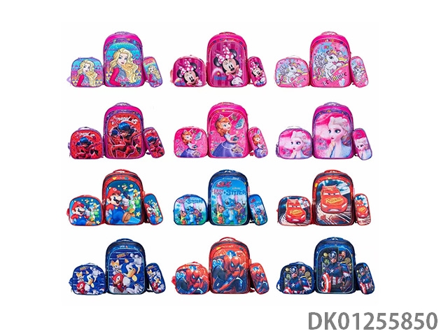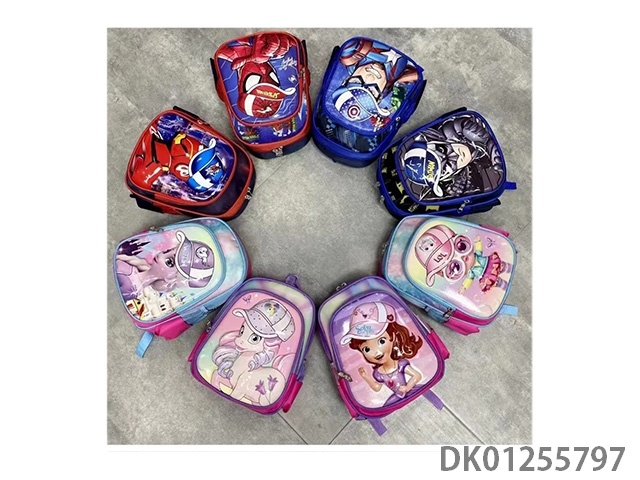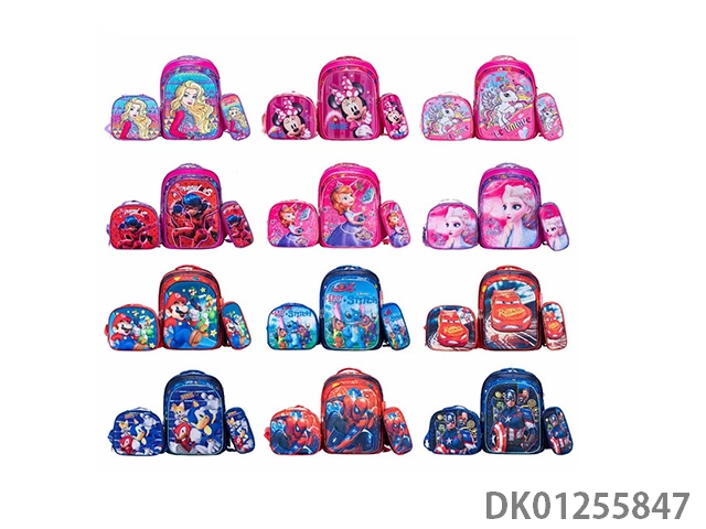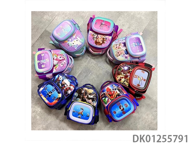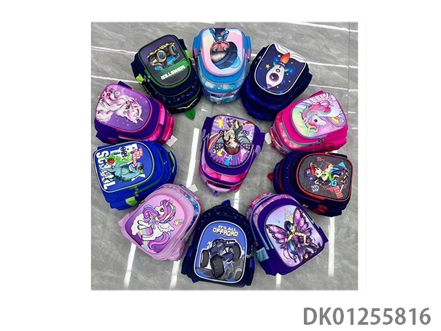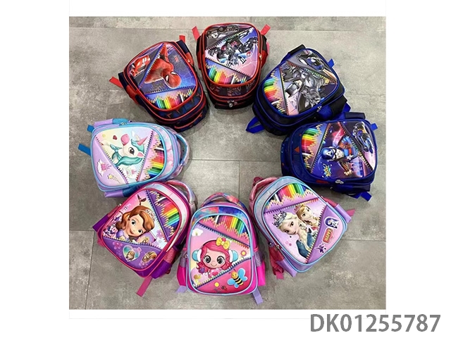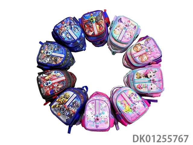 Backpack with pole, multiple cartoon patterns randomly mixed
