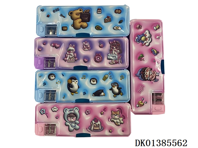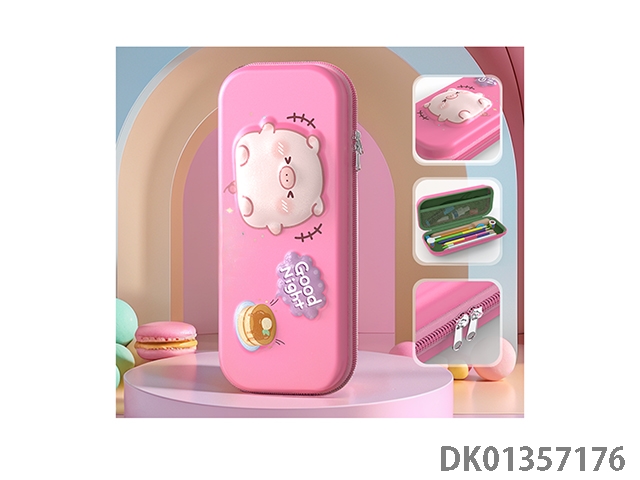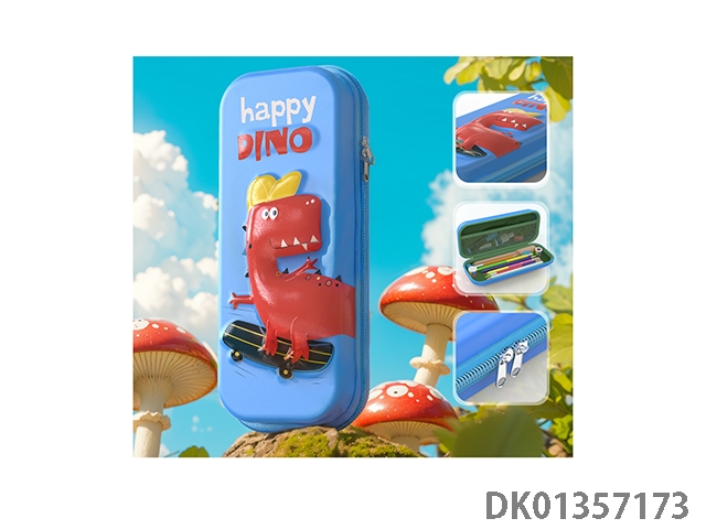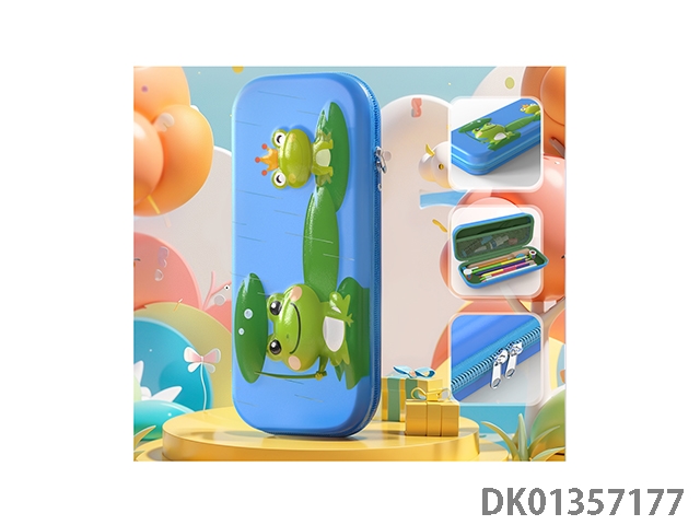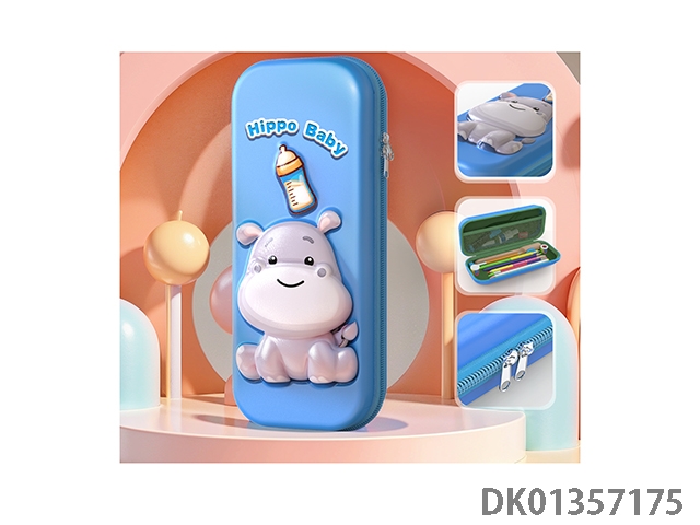 Little hippopotamus 3d concave convex leather pen box (blue)