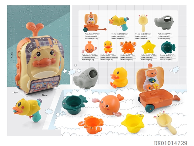 Colorful coating suit and (big head female baby) and fun hand pressure water jet bath
