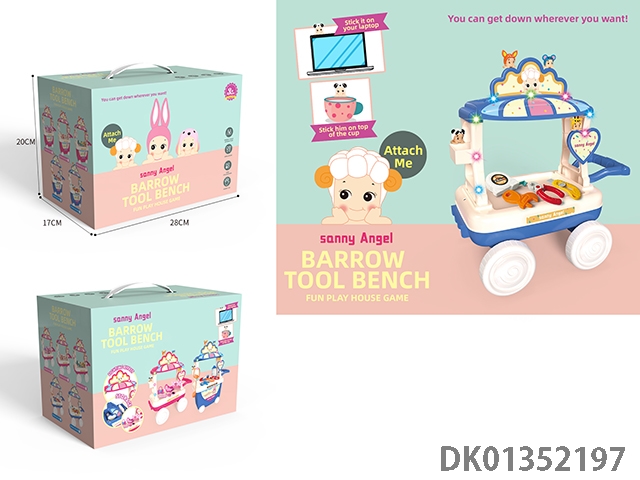 Puppy baby angel doll play home tool set, lighting handcart, randomly paired with 2 dolls
