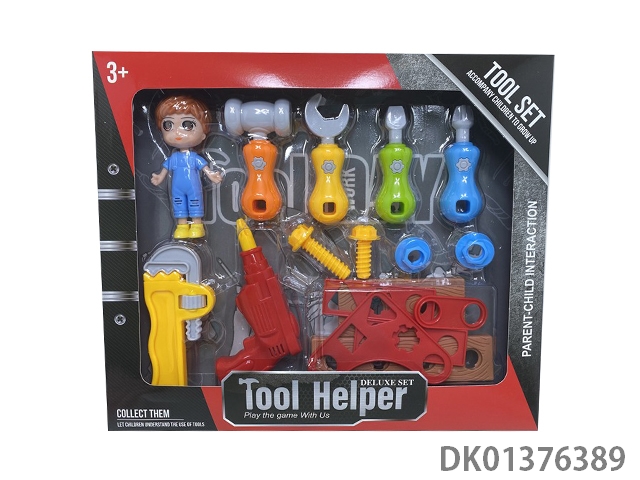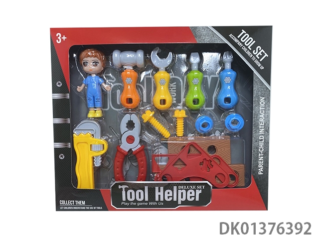 Three year old diy tool box (electric version) with 222pcs randomly paired with 2 dolls