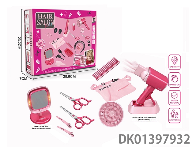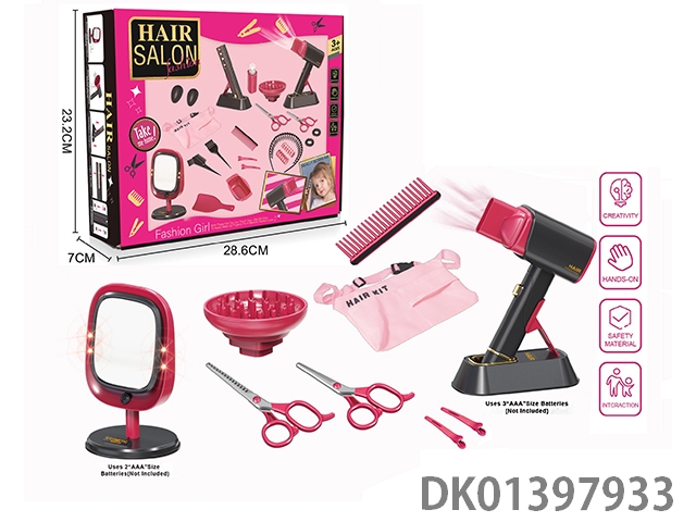 Electric simulation hairdressing set (14 piece set with makeup mirror)