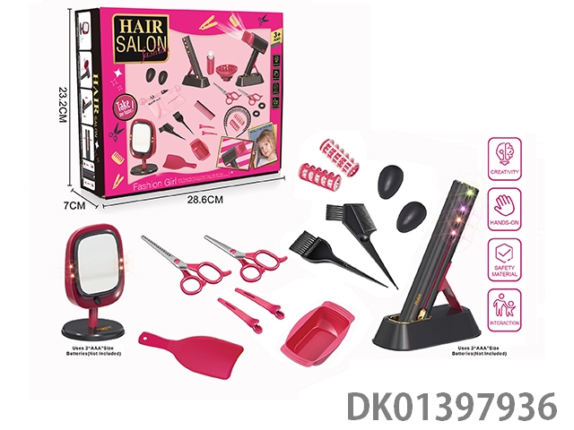Electric simulation hairdressing set (17 piece set with makeup mirror)