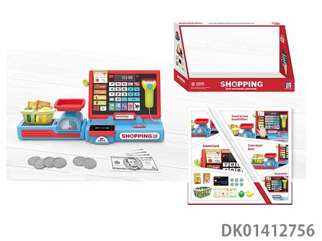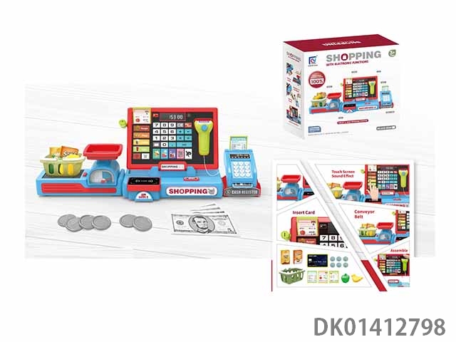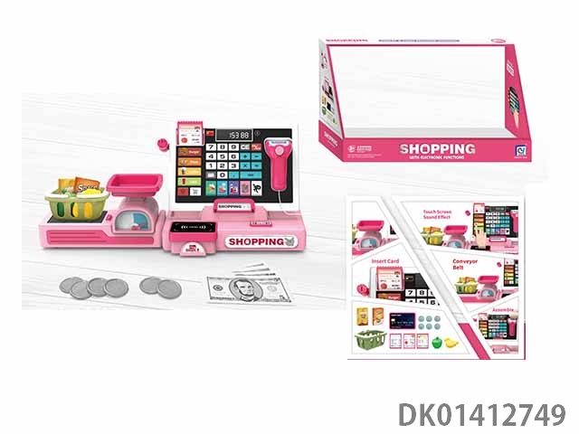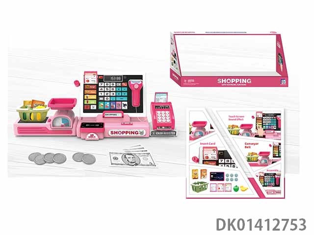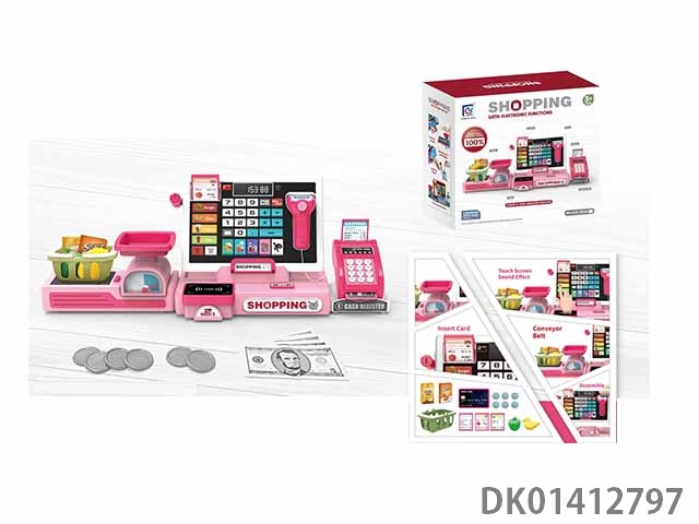 Pink cash register, electric conveyor belt, and pos machine (with calculator function)