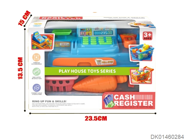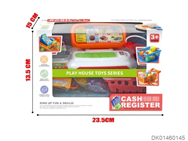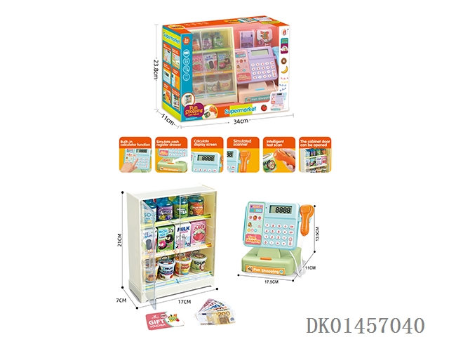 Cash register with refrigerator and food (cash register with calculation and sound functions)