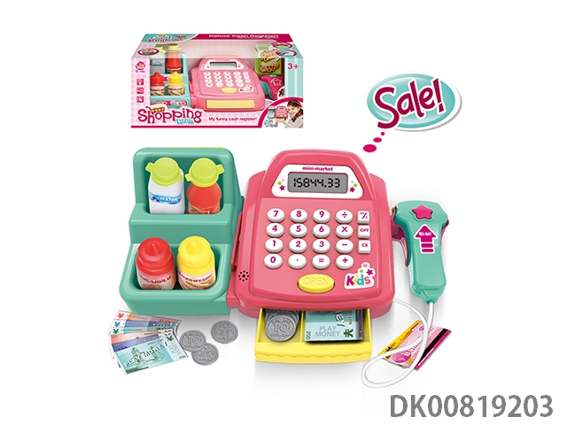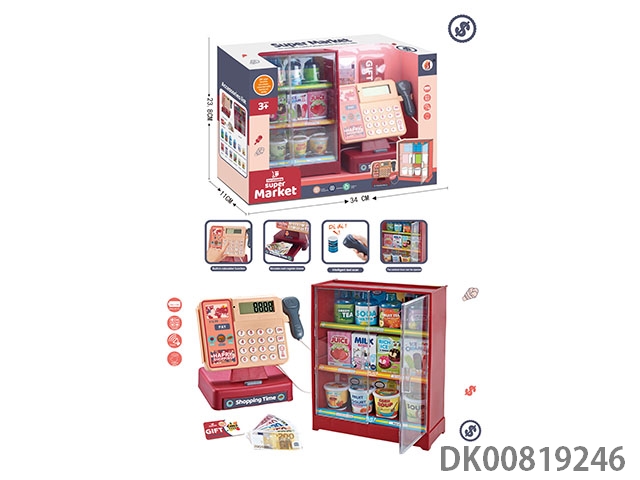 Cash register with refrigerator and food (cash register with calculation, scanning and sound functions)