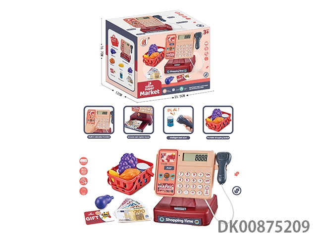 Cash register with refrigerator and food (cash register with calculation, scanning and sound functions)