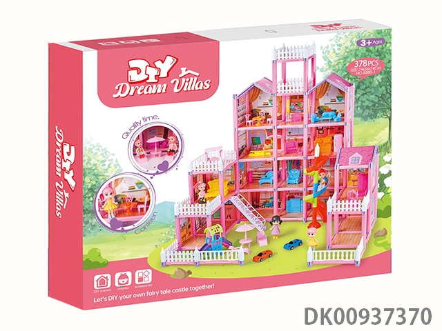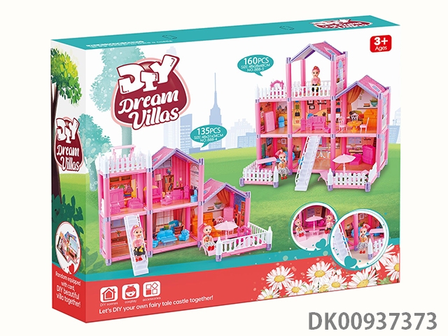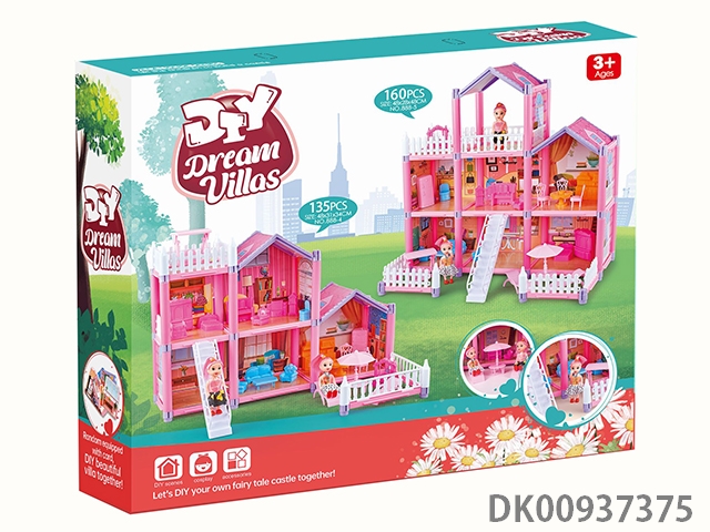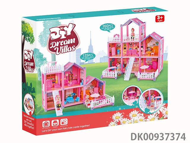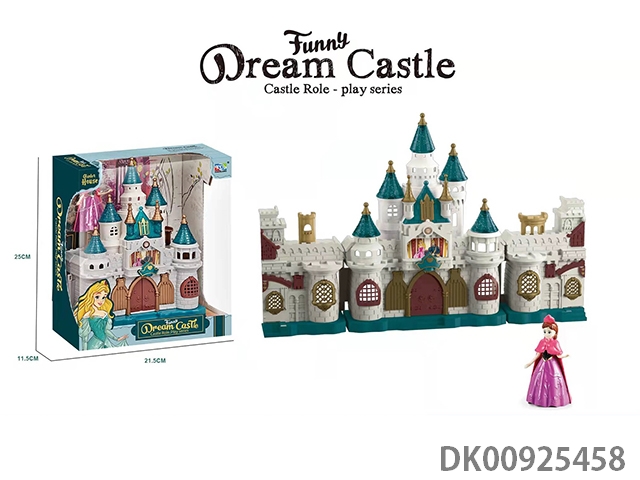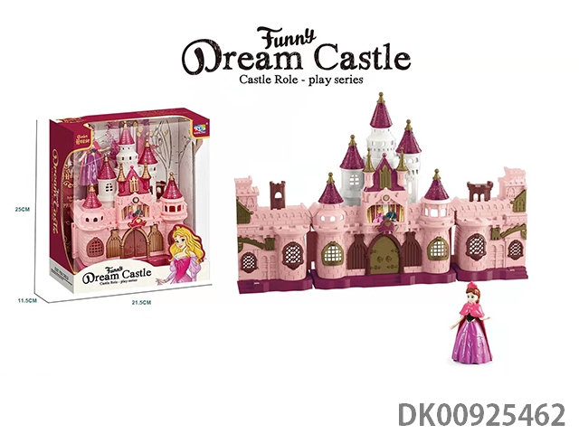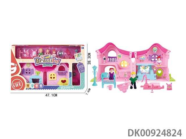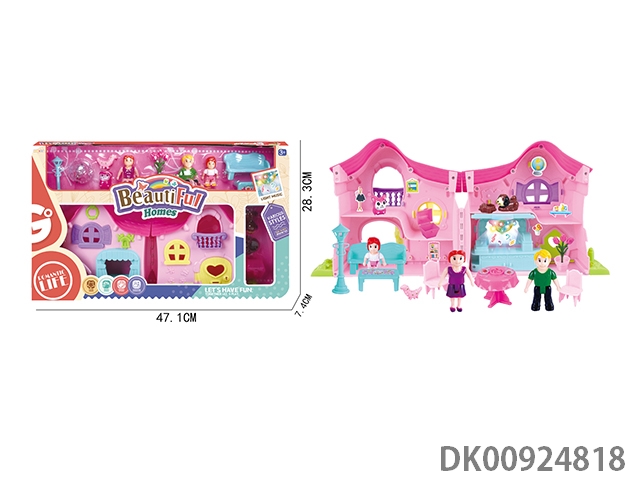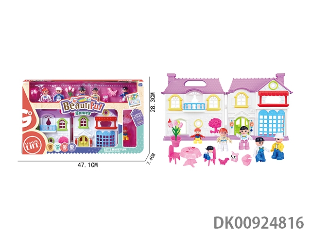 1 Cartoon villa set with 3 people with 7 color chandeliers (3 pieces of ag13 in 7 color chandelier bag)