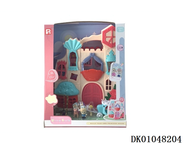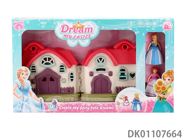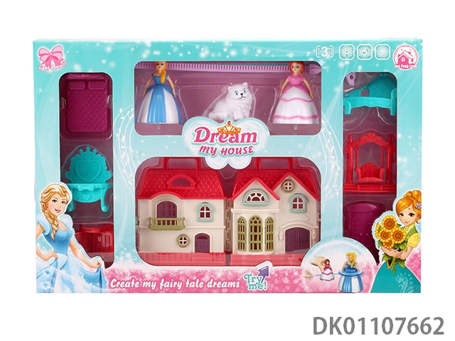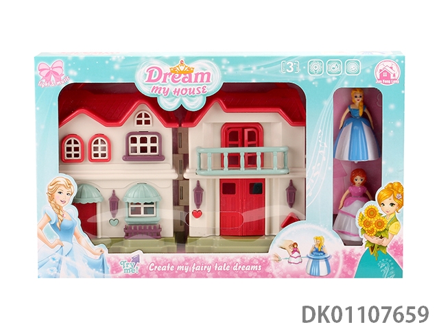 7 Color lighting villa with 12 pieces of music (including 3 ag13) and top princess and cat and furniture