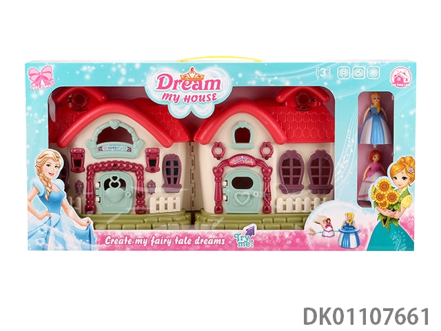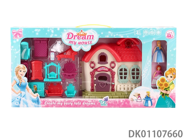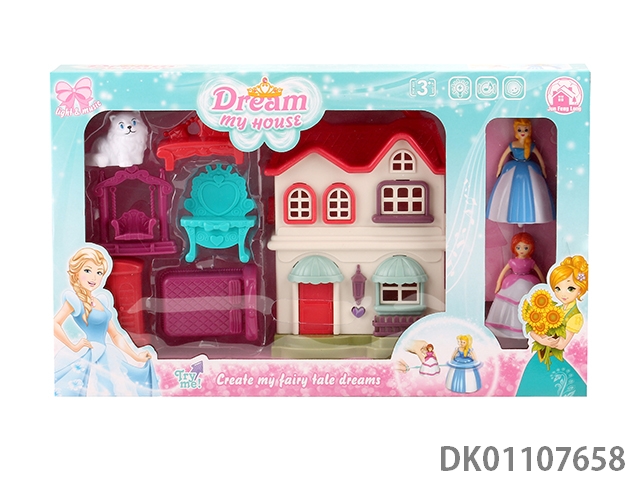 7 Color lighting mini villa with 12 pieces of music (including 2 ag13) and top princess and cat and furniture