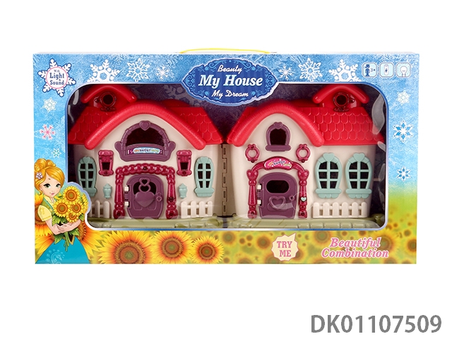 7 Color lighting villa with 12 pieces of music (including 3 ag13 batteries), furniture and characters