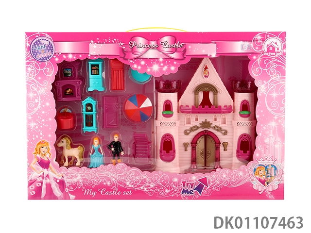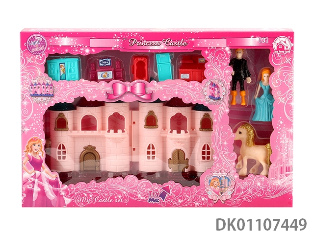 Flashing lantern castle with 12 pieces of music (including 2 aa batteries) and furniture/princess/prince/horse