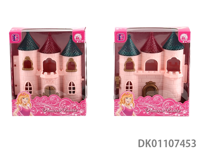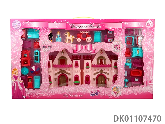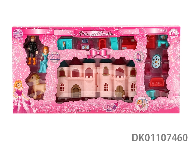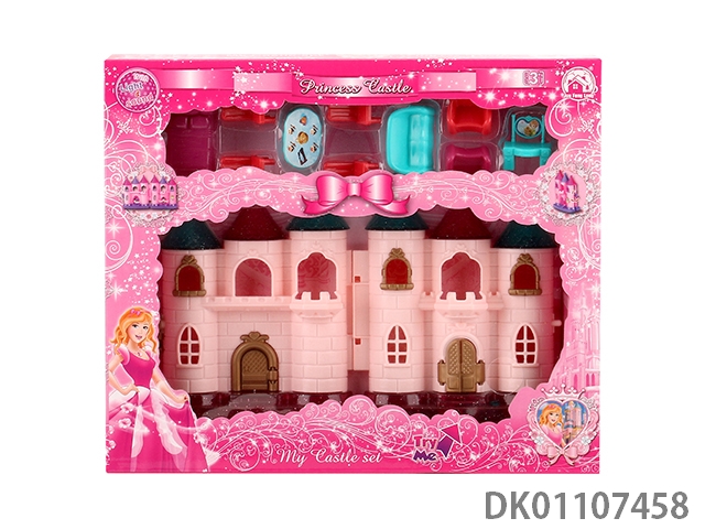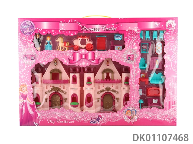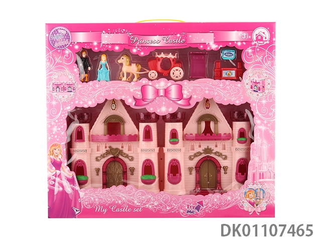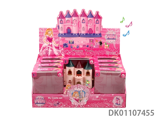 1 Side flash colored lamp castle with 12 pieces of music (2 mixed packs, including 2 aa batteries) and furniture/princess/prince/horse