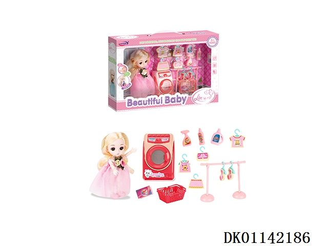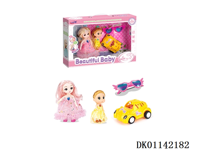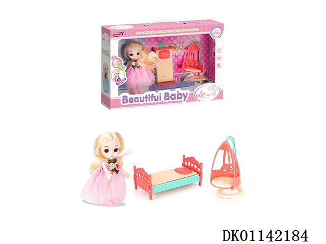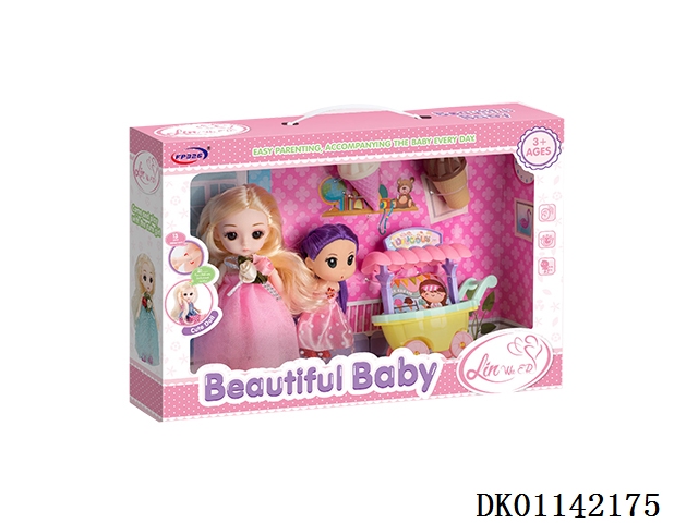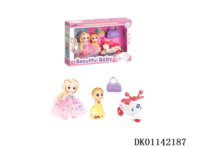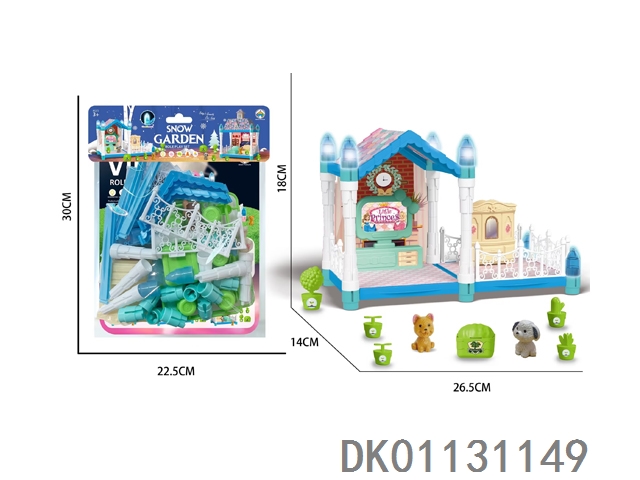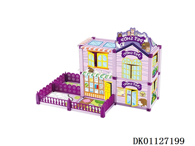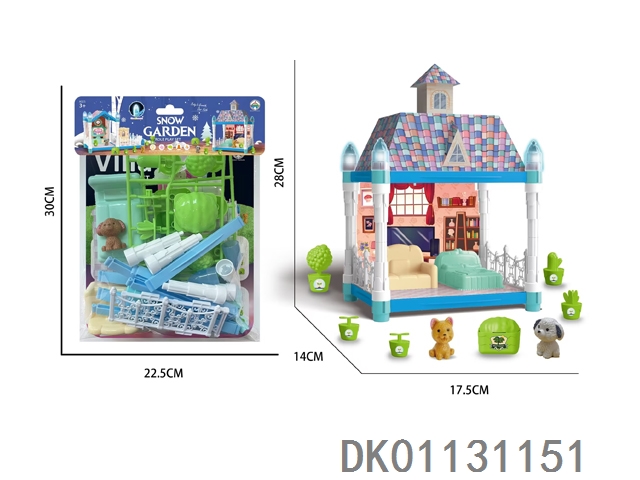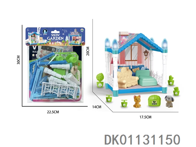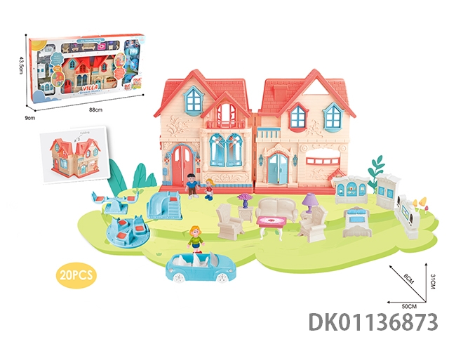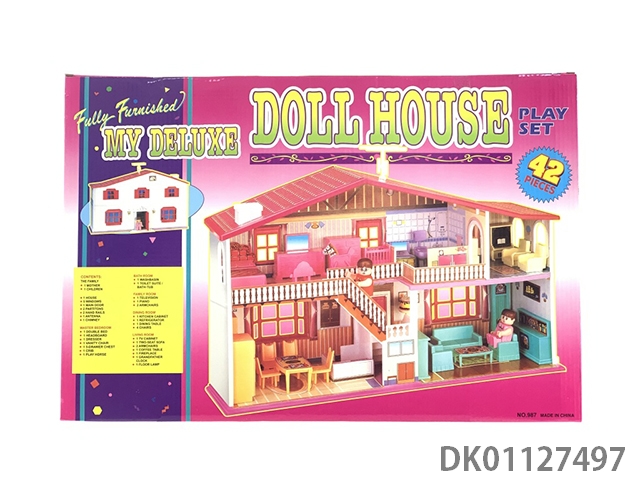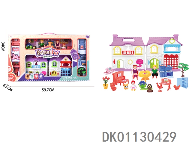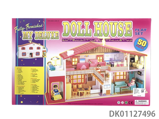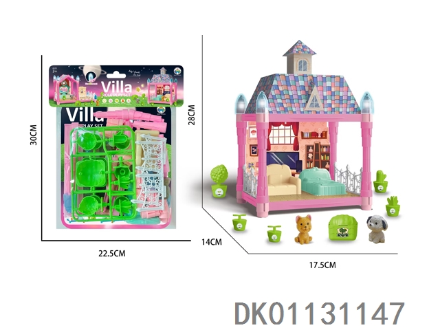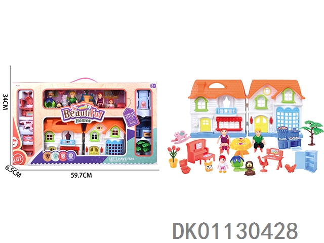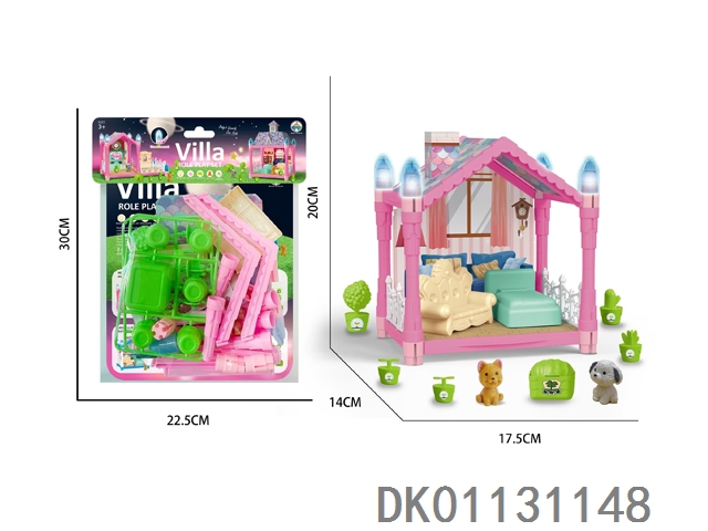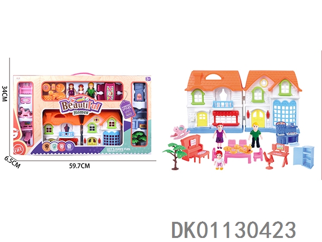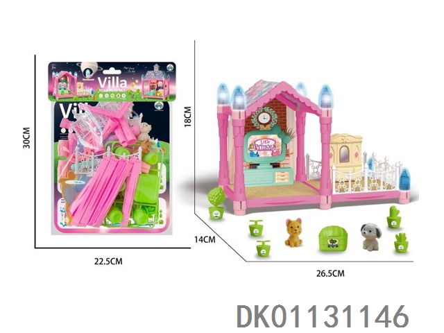 A family of three doll villa set with lighting, doorbell, and dog sound