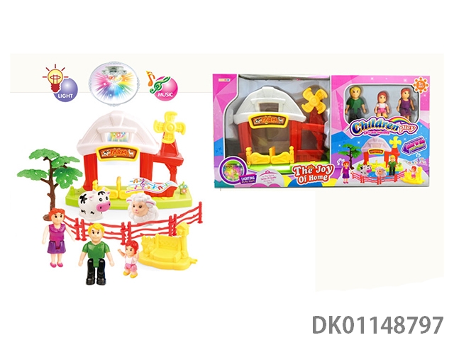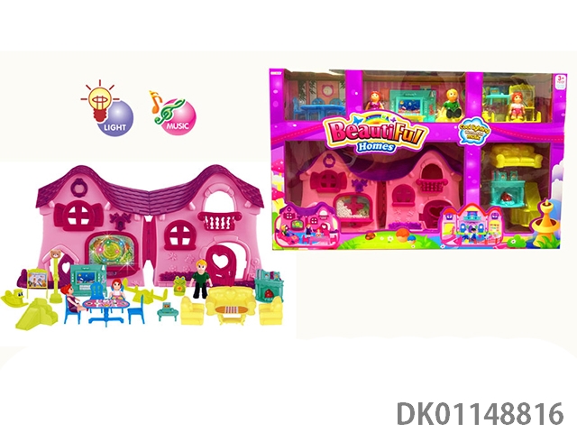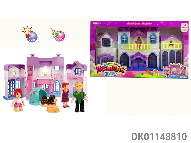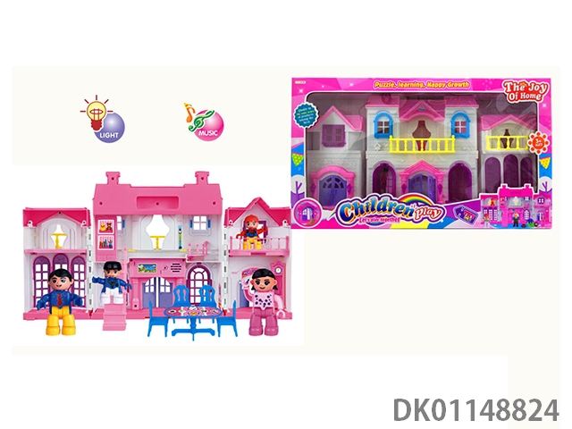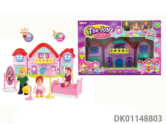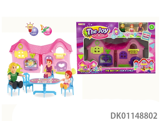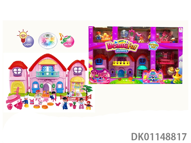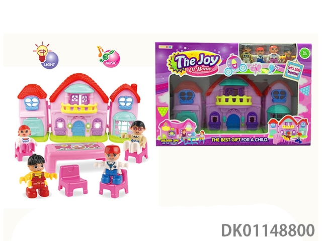 1 Family with 3 cartoon villas set with 7 color chandeliers