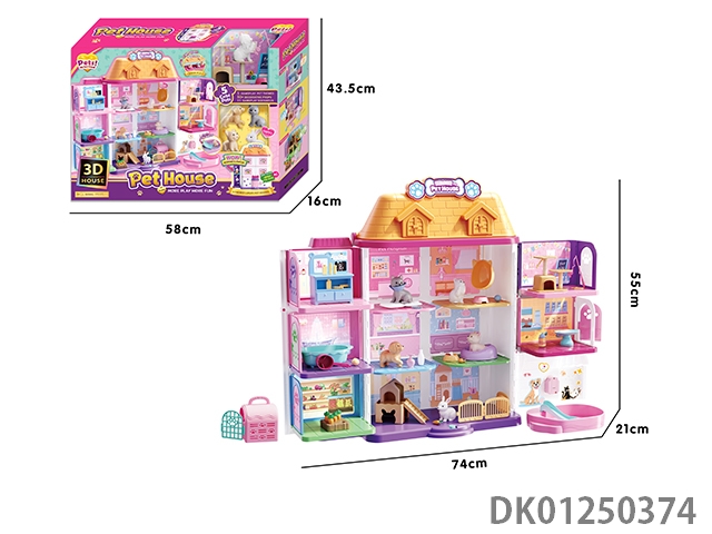 Cute pet life pavilion set and door ring (98pcs) with 3 ag13 batteries included