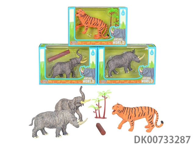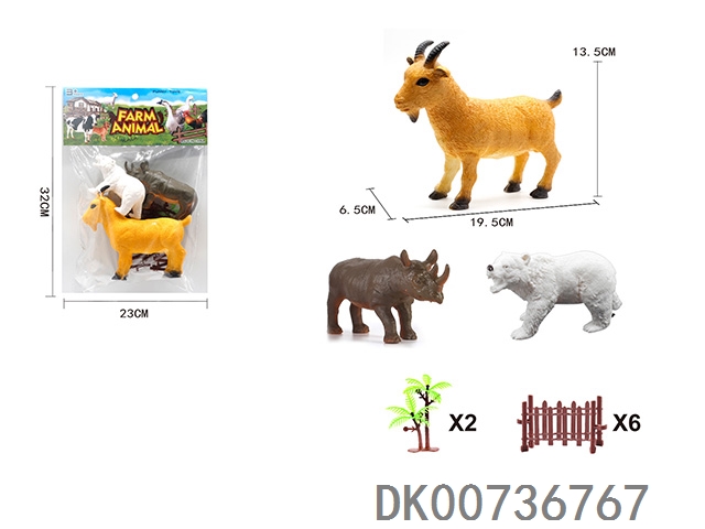 Big sheep and little white bear rhinoceros and 6 railings 2 trees