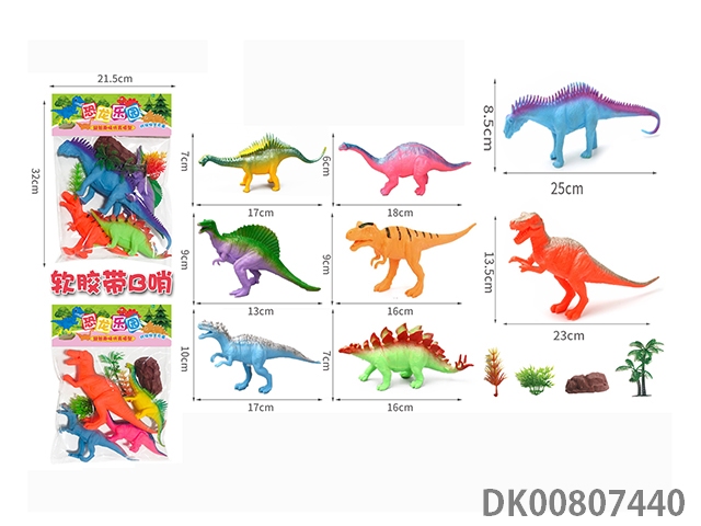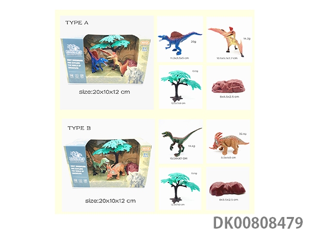 2 4-Inch solid polychlorinated dinosaurs packed with tree and stone
