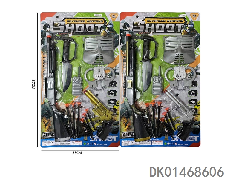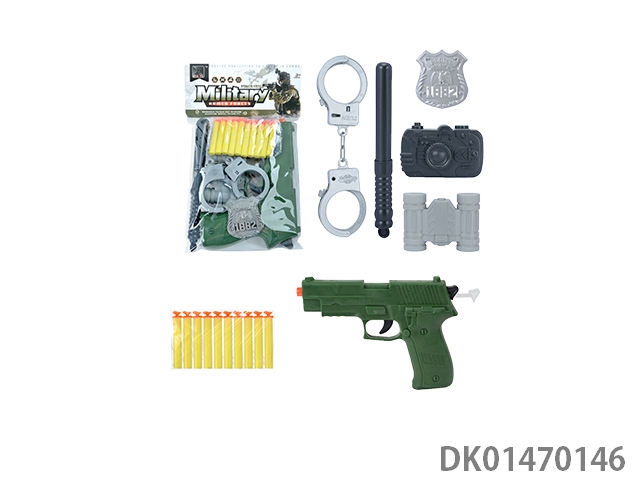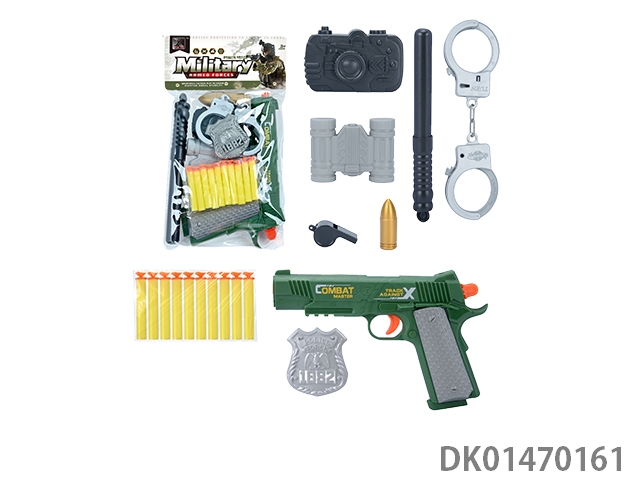 Military kit (handcuffs and hanging, badge and baton, camera and telescope, may fourth soft bullet gun and bullets * 10)