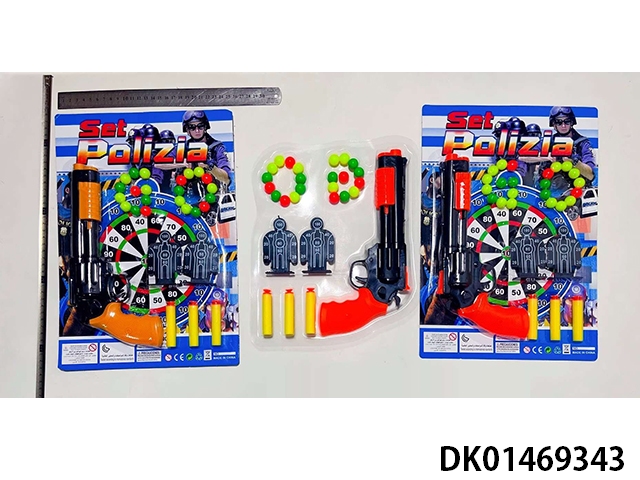 Police kit (handcuffs and badge, parking sign and grenade * 2, walkie talkie and telescope, camera and whistle with keyring and revolver, soft bullet gun and bullets * 10)
