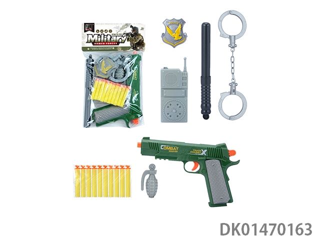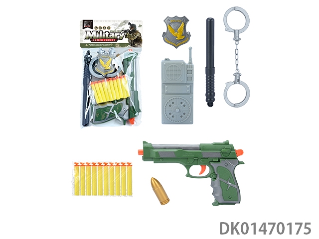 Military kit (handcuffs, badge, baton, walkie talkie, gold bullets, may fourth soft bullet gun, and bullets * 10)