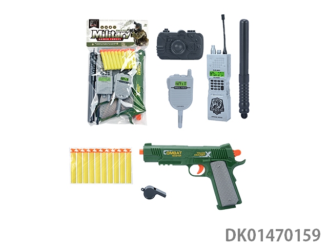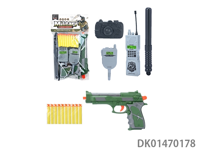 Military kit (walkie talkie and stick, camera and whistle, and may fourth soft bullet gun and bullets * 10)