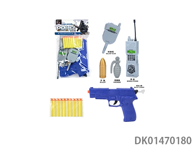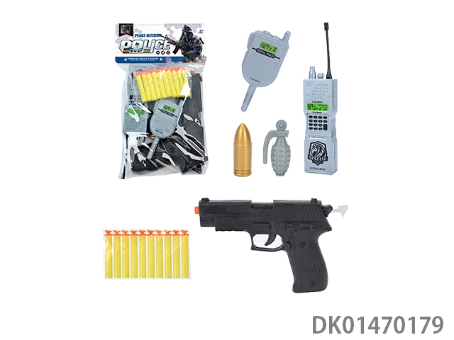 Police kit (walkie talkie, hand grenade, gold bullet, may fourth soft bullet gun and bullet * 10)