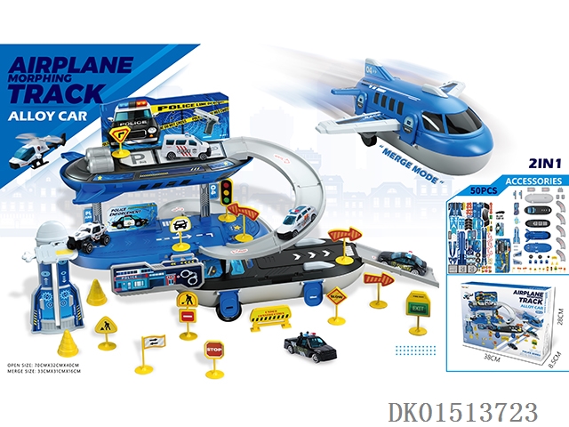 Playing house, airplane storage, alloy police car parking lot (with 1 alloy car) (with 1 set of road signs) (50pcs)