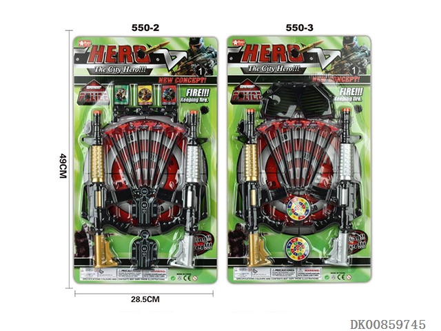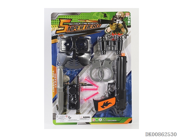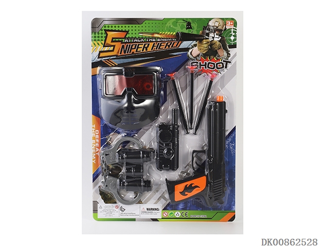 Three bullet five four soft bullet gun with mask, knife, walkie talkie, handcuffs and telescope