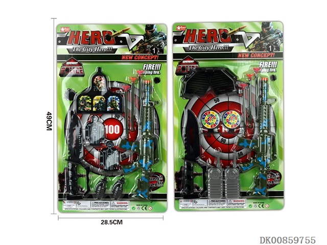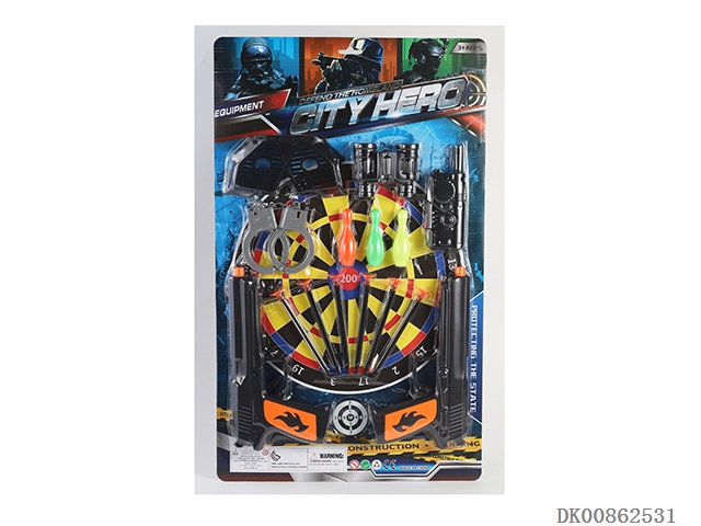 Three bullet five or four needle gun with mask, walkie talkie, handcuffs and telescope