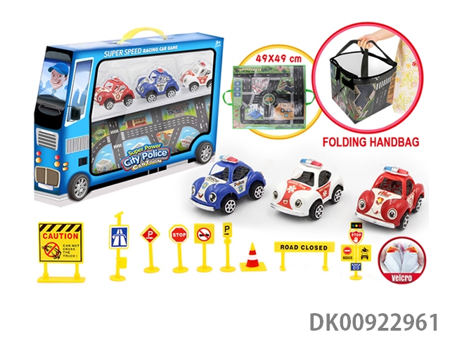 City map storage bag with 3 sets of return force police cars (plus 9 road signs)