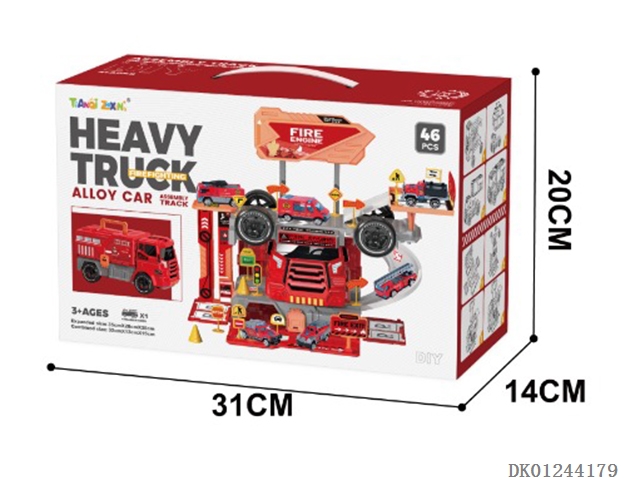 Guojiajia storage alloy fire parking lot (equipped with 1 alloy car) (equipped with 1 set of road signs) (46 pcs)